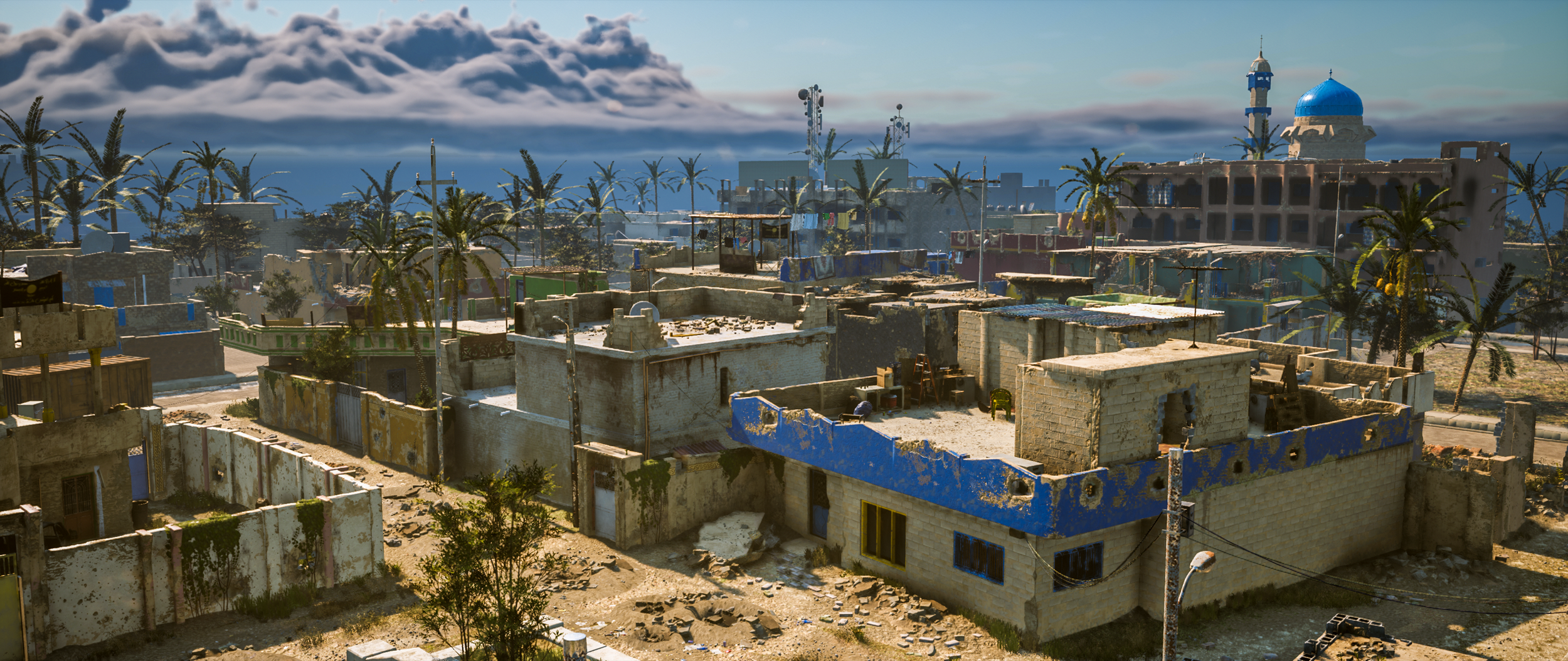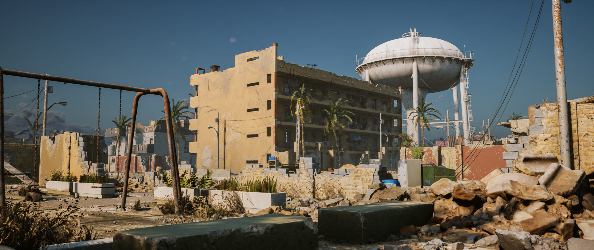 These images are from the same vantage point and our goal was to generate unique layouts of city blocks, buildings, and roads each time the players load into the game.